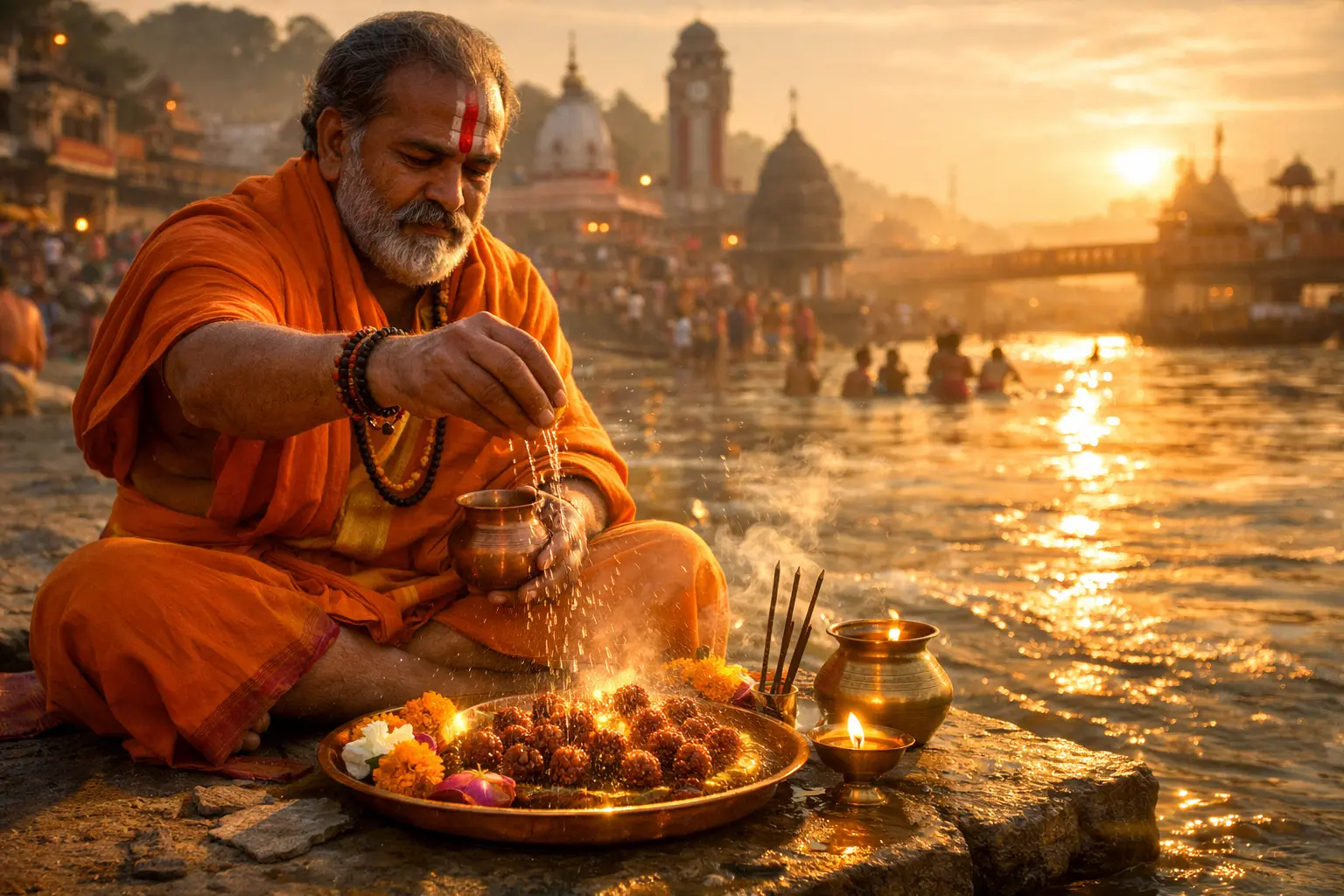 With deep devotion and traditional Vedic methods, each Rudraksha is blessed on the sacred banks of Ganga in Haridwar to bring peace, protection, success, and spiritual growth into your life.